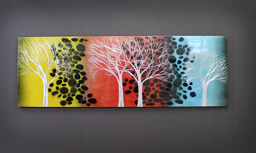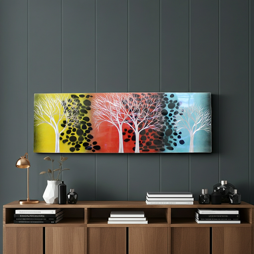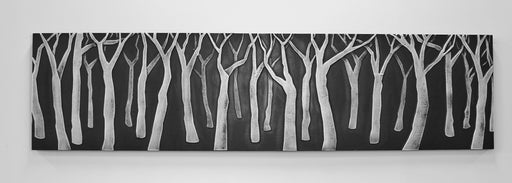 Home RepublicEtt stilrent och harmoniskt konstverk inspirerat av naturens stillhet. LÀdertavla Skog skildrar en minimalistisk silhuett av trÀdstammar i silvergr...