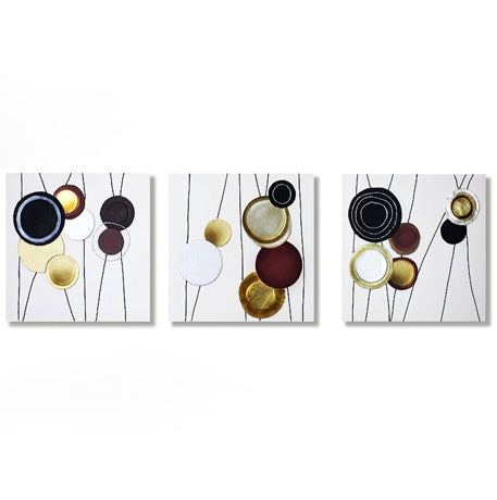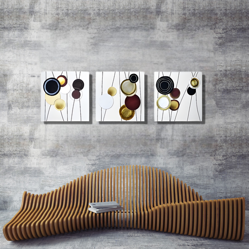 Home RepublicEtt modernt och livfullt konstset som sprider glÀdje, energi och stil. LÀdertavlor Cirkus vit bestÄr av tre harmoniska tavlor dÀr cirklar i guld, v...