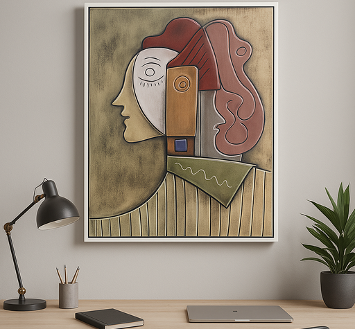 Home RepublicEtt elegant konstverk inspirerat av Picassos kubistiska formsprÄk, dÀr mjuka linjer möter geometriska former i en harmonisk balans. Tavlan visar et...